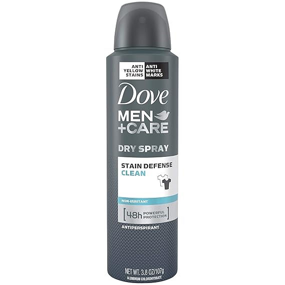 Dove men care stain defense clean antiperspirant deodorant stick non irritant antiperspirant deodorant stay dry without white marks with dove men care stain defense clean antiperspirant deodorant stick. Stay dry all day and get the added benefit of anti stain and anti mark protection with dove men care stain defense clean antiperspirant deodorant dry spray. I use it daily and it doesnt leave a stain on shirts like other antiperspirant tends to do. This men s invisible spray tackles underarm stains head on while giving you powerful 48 hour protection against sweat wetness and body odor.