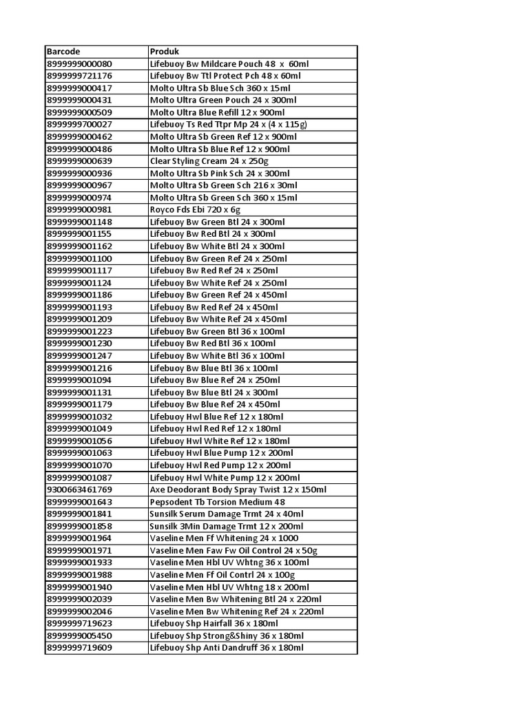 Barcode Unilever Brand Hygiene