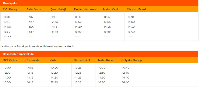 Mall Of Istanbul Servis Saatleri