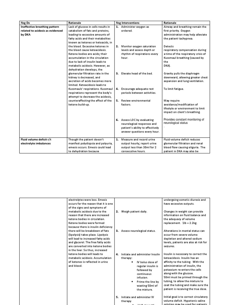 4 Diabetic Ketoacidosis And Hhns Nursing Care Plans