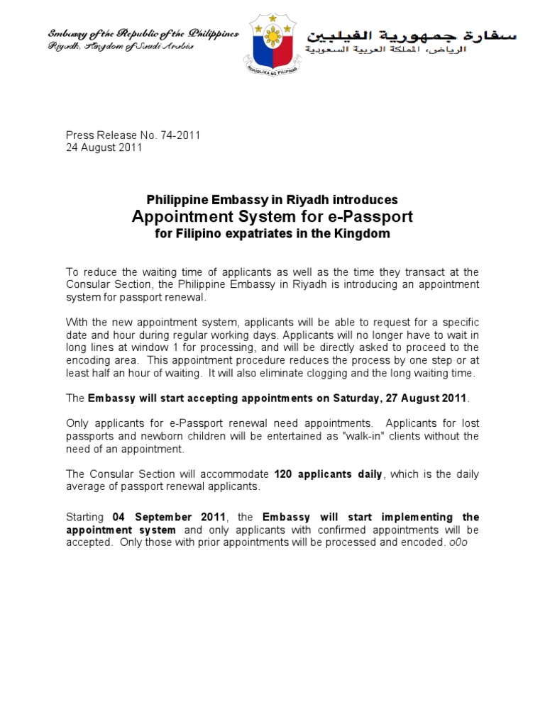 Philippine Embassy Riyadh Passport Release Passports Ready For Release Check If Your Renewed Passport Is Available For Release Release Riyadh Philippine